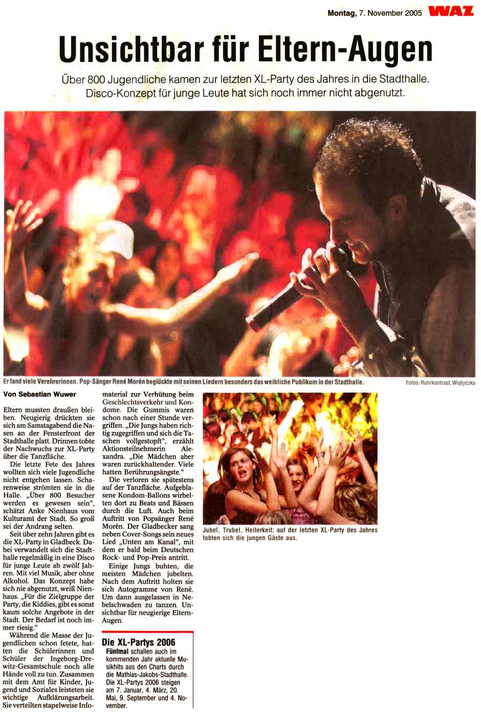 | Montag, 07.November 2005 WAZ (Originalseite siehe unten) Unsichtbar für Eltern-Augen Über 800 Jugendliche kamen zur letzten